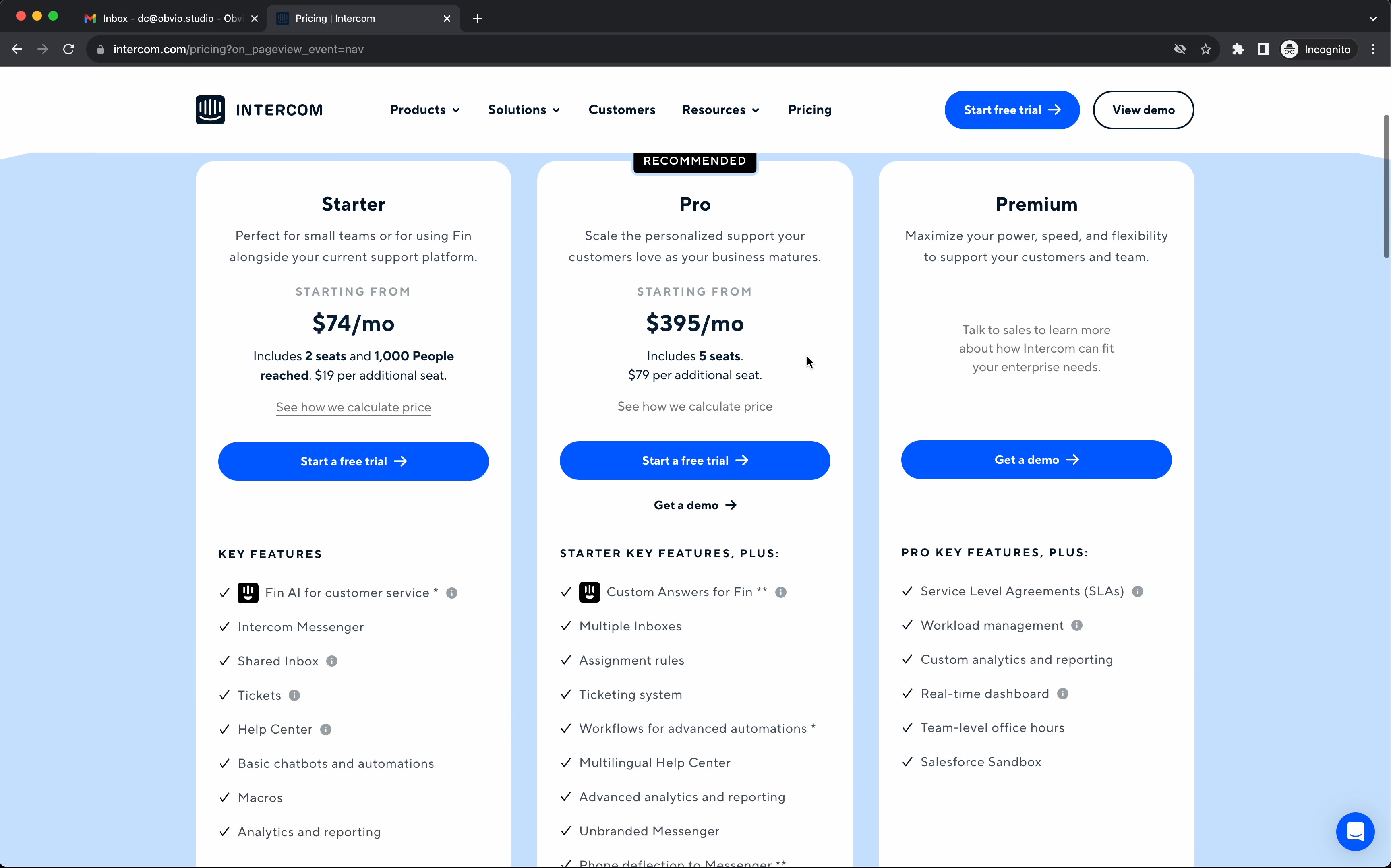 1/ It’s clear what you’re getting extra in Pro and Premium. With just the use of one magic word, “plus.” Starter Key Features, Plus. Pro Key Features, Plus.