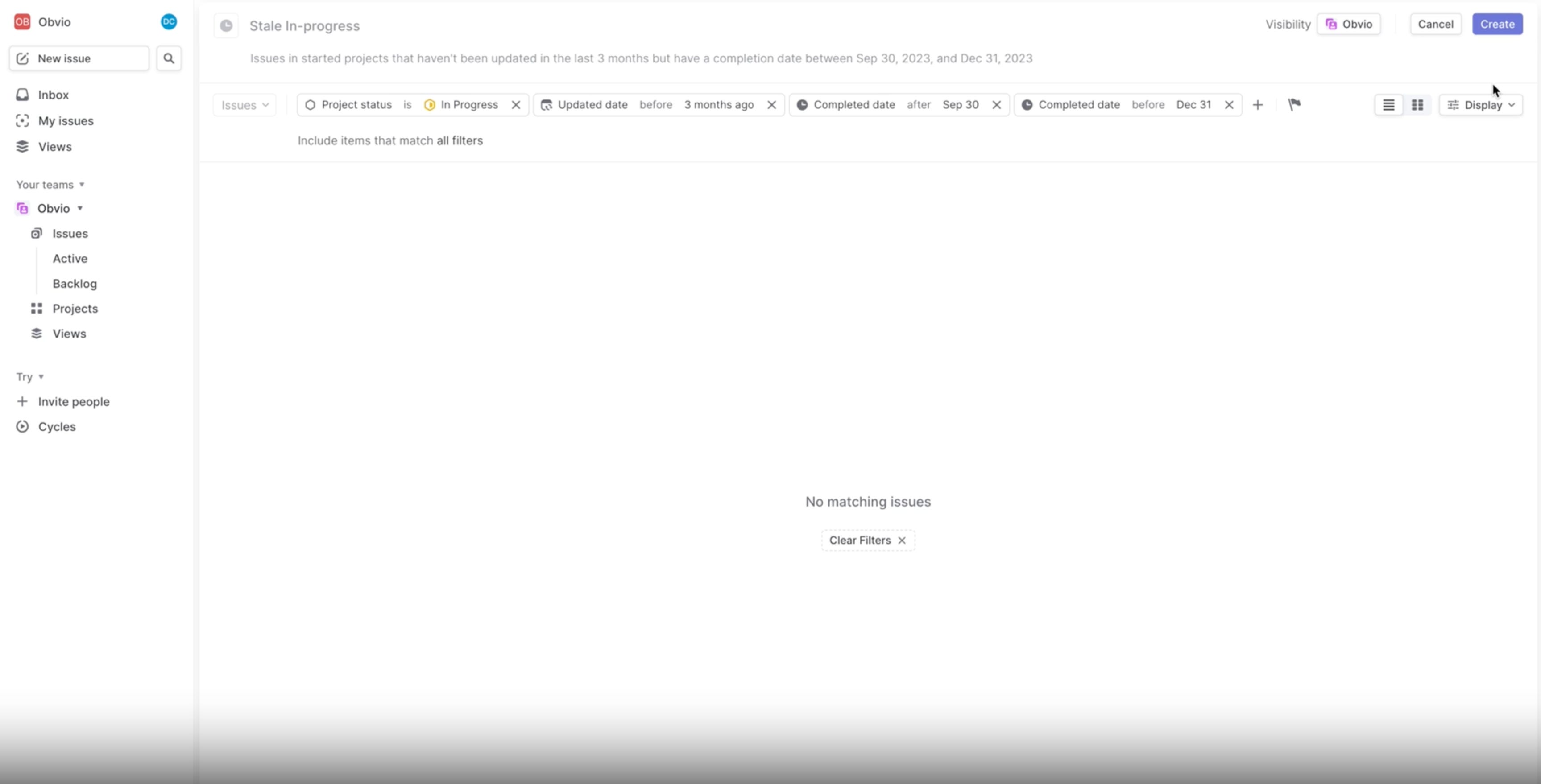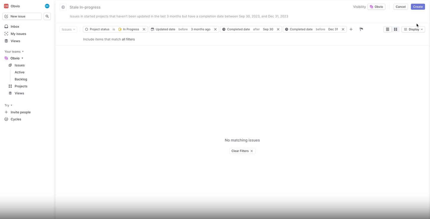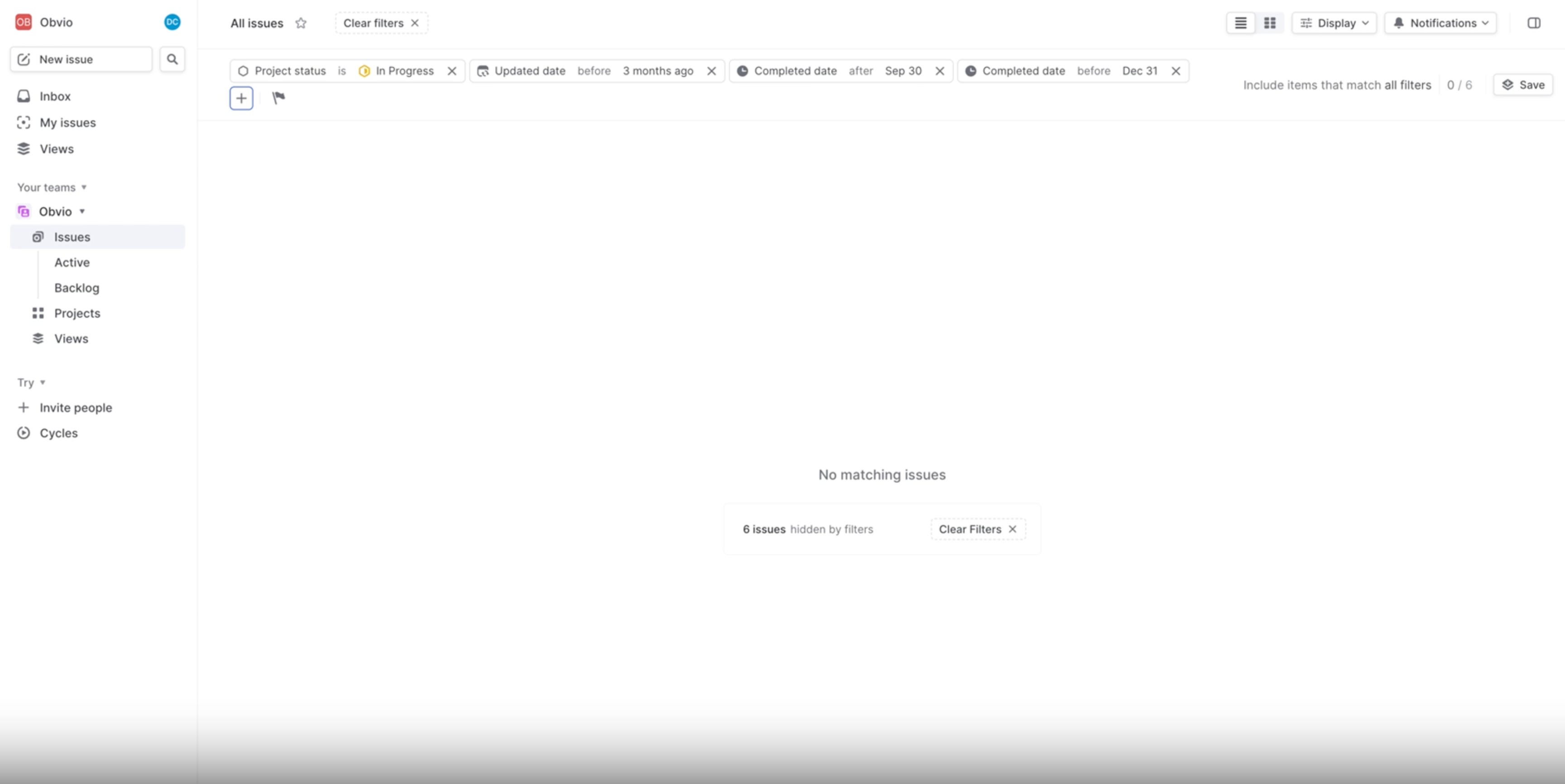 7/ You can save filters, and it conveniently auto-fills the title based on your filter type. For instance, it named my filter 'State in-progress' and provided a helpful description.