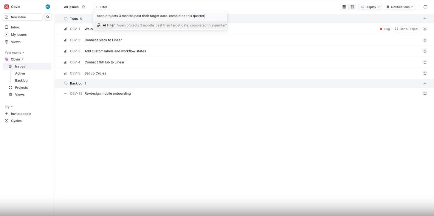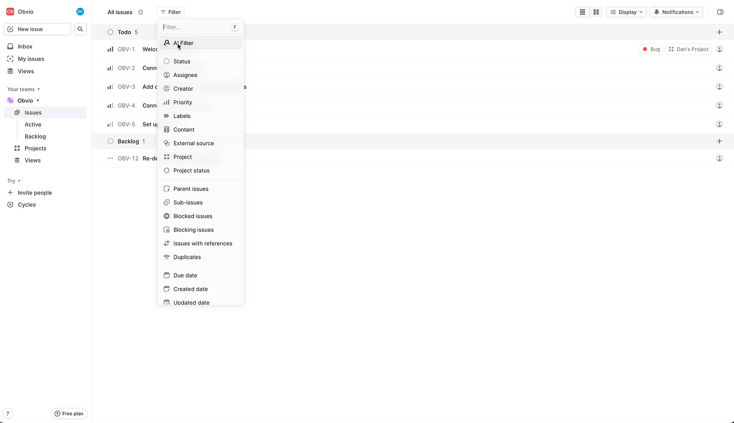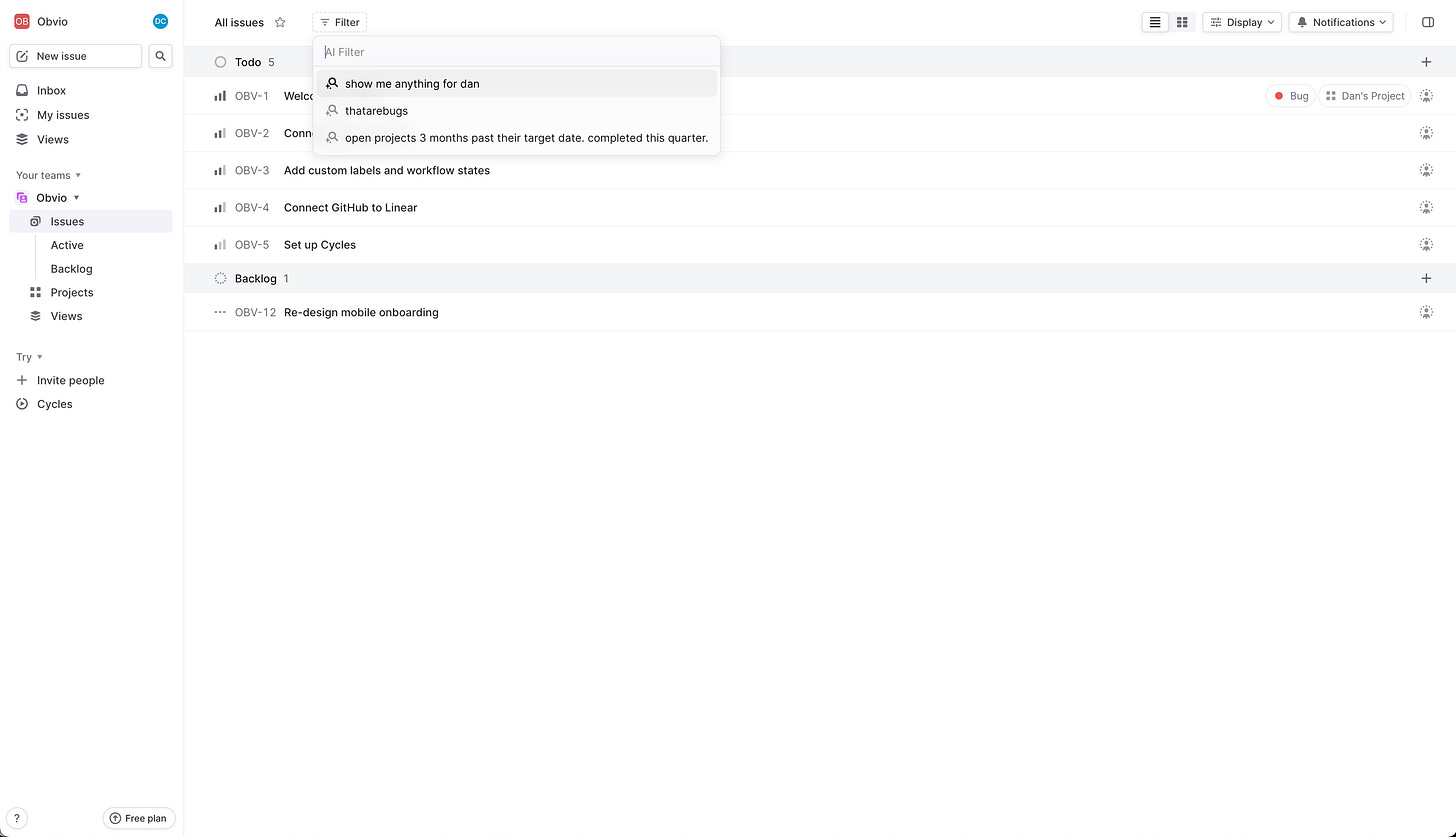 Breaking down Linear’s AI filter user flow. Video, screenshots, and Figma files included.