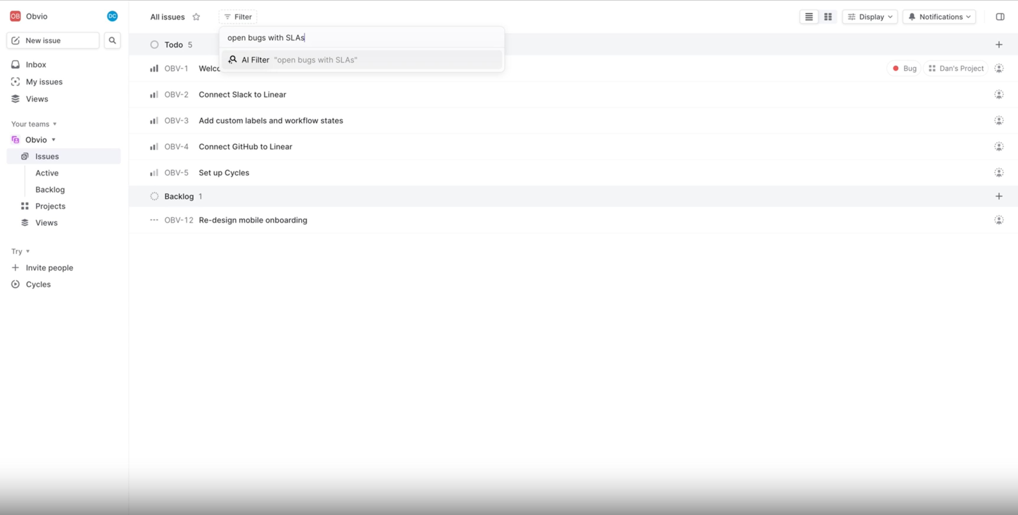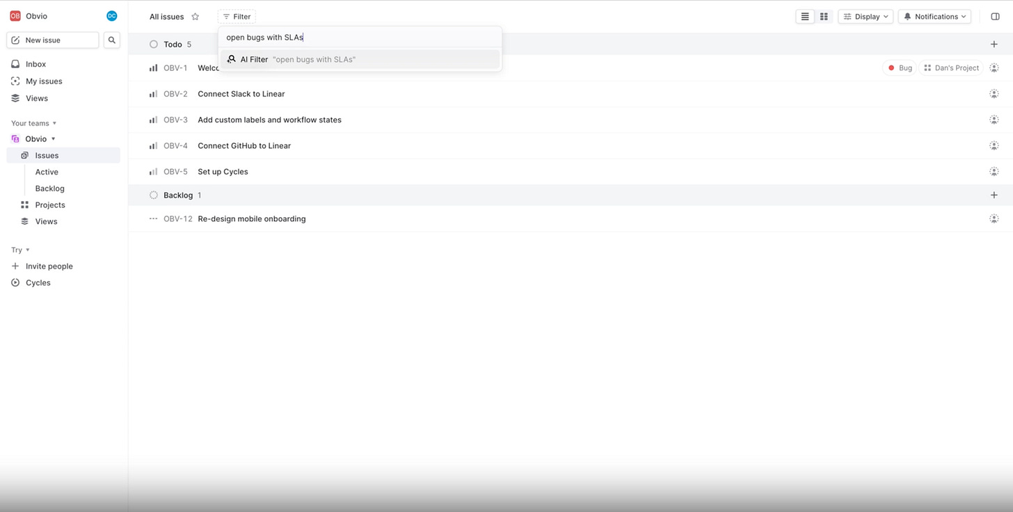 5/ Noticed my prompt was “open bugs with SLAs”. And filters were magically applied. Just using good old fashioned natural language.